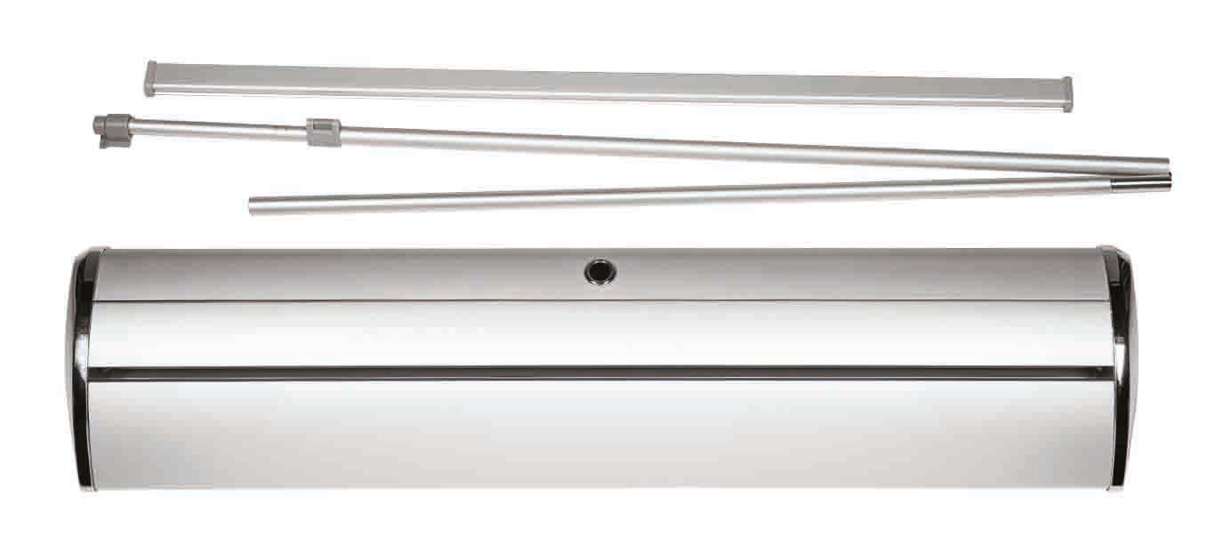 Mit dem Roll-Up Banner von XenoPrint in Nürnberg, Erlangen, Fürth und der gesamten Metropolregion Nürnberg erhalten Sie ein Banner aus der Standard-Reihe. Dieser ist Silber eloxiert und kommt mit einer Klemmschiene sowie verchromte Endkappen daher. Die beiden verchromten Endkappen stechen bei diesem System besonders hervor und verleihen Ihnen einen exclusiven Auftritt. Auch für Messen, Events, Ausstellungen, Werbeaktionen und Ähnliches eignet der Roll-Up Banner sich ideal, denn er kann einfach und bequem in der mitgelieferten Transporttasche transportiert werden.