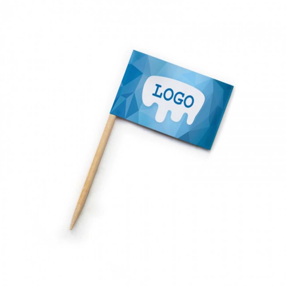 Zahnstocher mit Fähnchen | ca. 7 cm | beidseitig bedruckt von XenoPrint aus Nürnberg, Erlangen, Fürth und der gesamten Metropolregion Nürnberg mit Ihrer Werbung oder Ihrem Logo bedruckt.